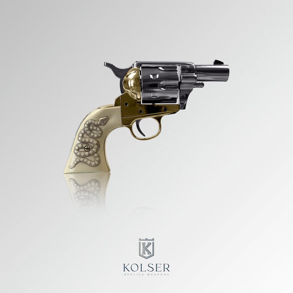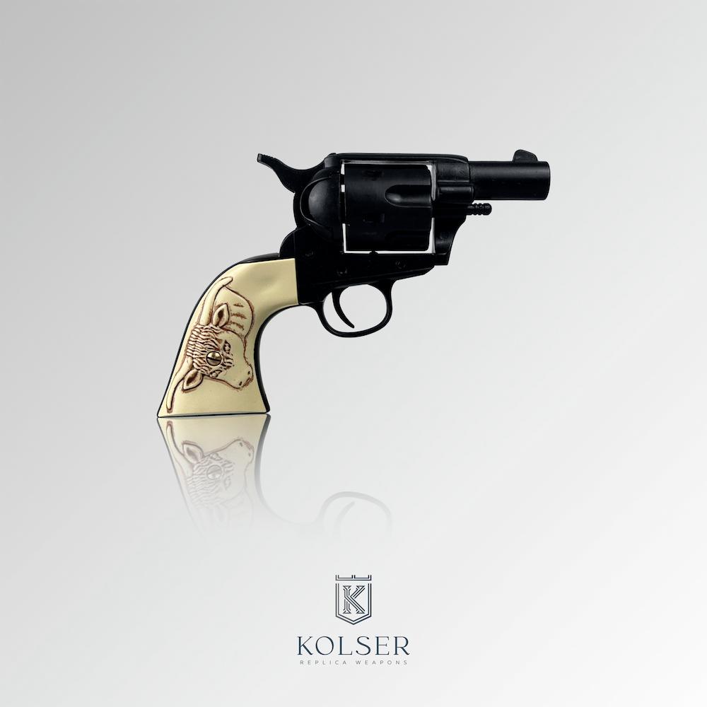 El Pocket Revolver USA 1873 de Kolser se inspira en estas variantes compactas. Su tamaño reducido y diseño equilibrado lo convierten en una réplica histórica excepcional, perfecta para quienes buscan una pieza singular y manejable dentro del universo del Lejano Oeste.